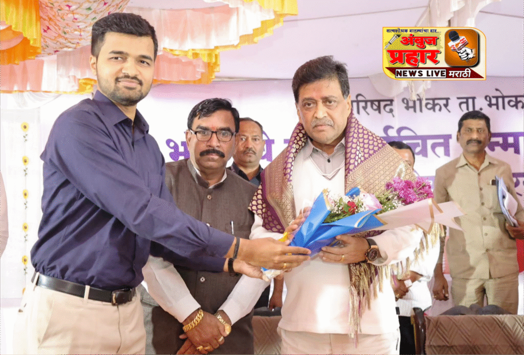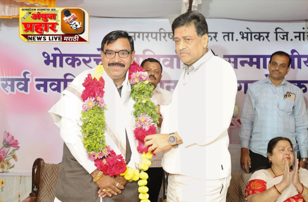 यावेळी भाऊराव चव्हाण सहकारी साखर कारखान्याचे अध्यक्ष नरेंद्र चव्हाण, भाजपाचे भोकर तालुकाध्यक्ष दिवाकर रेड्डी सुरकुंटवार, माजी जि.प.सभापती प्रकाश देशमुख भोसीकर,बाजार समितीचे सभापती जगदीश पाटील भोसीकर,विशाल माने, शेख युसूफ,नगर परिषदेचे मुख्याधिकारी ऋषभ पवार यांसह आदींची सत्कारपीठावर उपस्थिती होती.