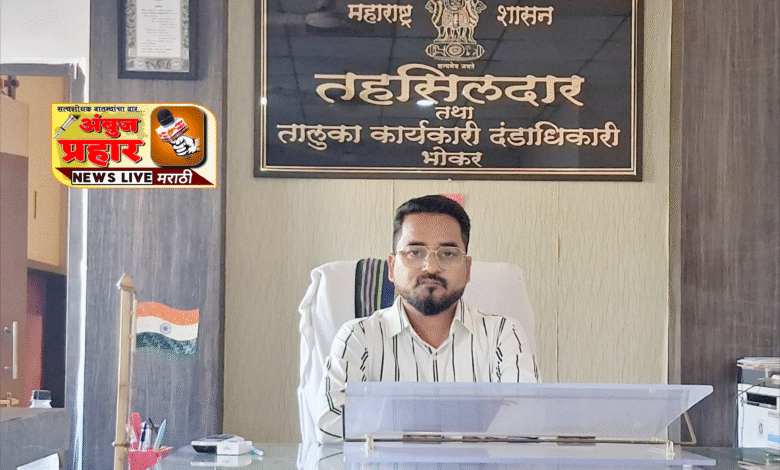 भोकर : नागरिकांना महसूल,सामाजिक सुरक्षा योजना, मोजणी व इतर शासकीय सेवा अधिक लोकाभिमुख, कार्यक्षम आणि गतिमान पद्धतीने उपलब्ध करून देण्याच्या उद्देशाने नांदेड जिल्हाधिकारी राहुल कर्डिले व उपविभागीय अधिकारी प्रविण मेंगशेट्टी यांच्या मार्गदर्शनाखाली तहसील कार्यालय, भोकर यांच्या वतीने ‘छत्रपती शिवाजी महाराज महाराजस्व समाधान शिबिर अभियान’ टप्पा क्र.१ हे दि.७ मार्च २०२६ ते दि.८ मे २०२६ या दरम्यान राबविण्यात येणार असून सदरील शिबिराचा लाभ नागरिकांनी घ्यावा, असे आवाहन भोकर चे तहसिलदार विनोद गुंडमवार यांनी केले आहे.